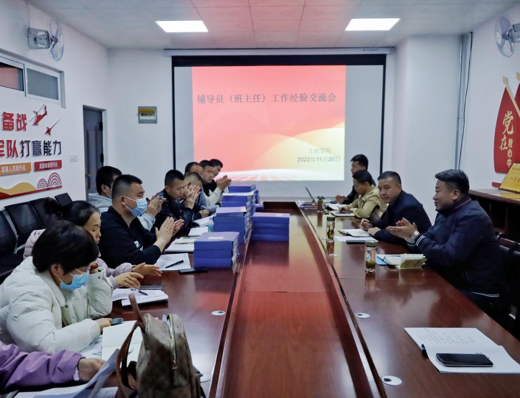为了进一步提高学生管理水平,促进辅导员、班主任职业能力提升,共享辅导员、班主任在学生管理中的好经验、好做法。11月20日晚,军士学院在一楼会议室召开辅导员、班主任工作经验交流会,党总支书记高永利、学生科人员、各辅导员及班主任参加会议。