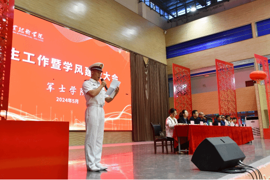 大会在庄严的国歌声中正式开始。会上,宣读了《军士学院关于第二届军事比武系列活动内务评比表彰的决定》和《军士学院2023-2024学年定向培养军士生学业及违纪预警的决定》,22级海军军士生代表衣浩然进行了发言。
