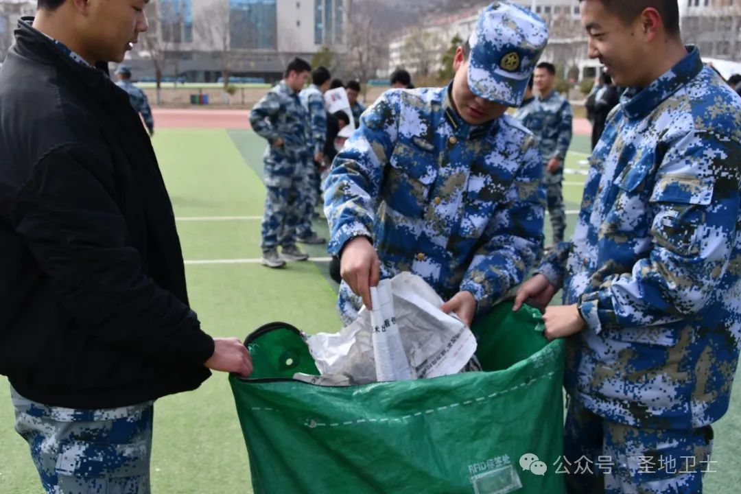 军士生们与学院的学生一起清理校园垃圾,营造良好的校园卫生环境,培养学生的卫生意识,让卫生意识深入人心,成为人们自觉的行为习惯。
