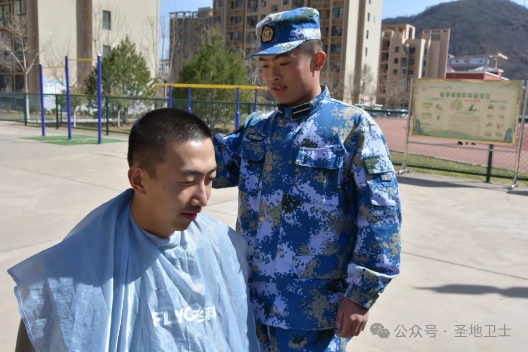 “青春理作寸头短,热血浇开军梦花。”体现了军士生立志将青春年华奉献给军队,用寸头展现出青春的活力与激情,他们以热血和汗水浇灌着自己的军旅梦想,在学校绽放出独特的青春光彩。