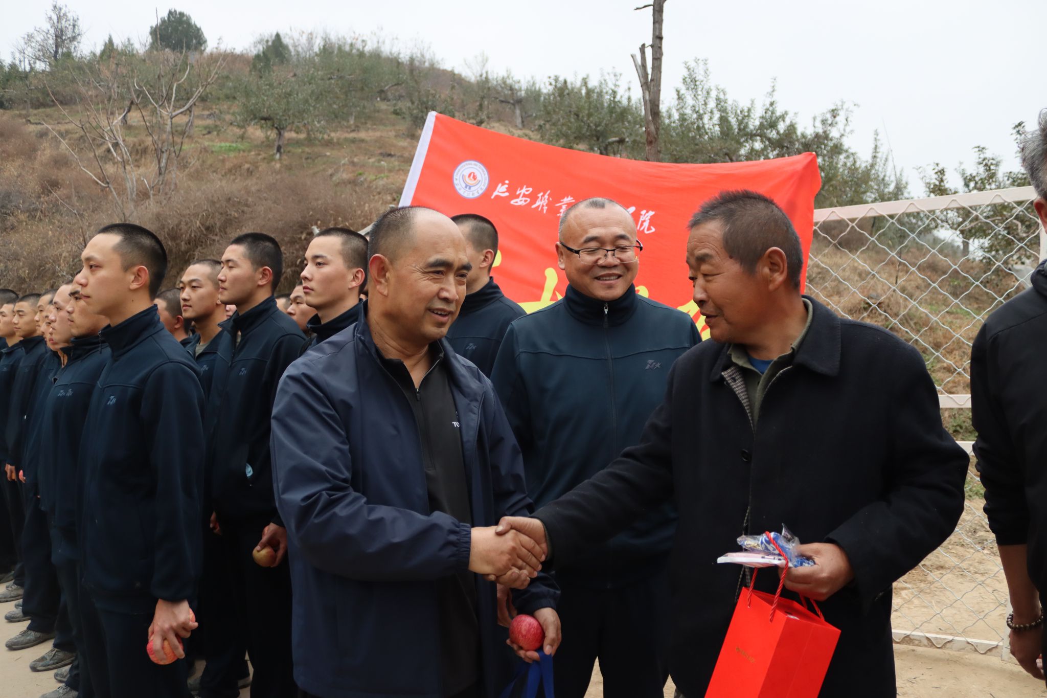 行军途经枣园镇庙沟村时,一幕感人场景温暖上演。面对道路两旁硕果累累的苹果园,全体学员严守群众纪律,秋毫无犯。村民们被定向培养军士严明的纪律和良好的作风所感动,纷纷拿出自家的苹果热情相赠。"孩子们训练辛苦,尝尝咱们延安的苹果!"村民王泽兵的话道出了老区人民的深情厚谊。这一刻,浓浓的鱼水深情在果园间流淌,生动诠释了新时代的军民团结。